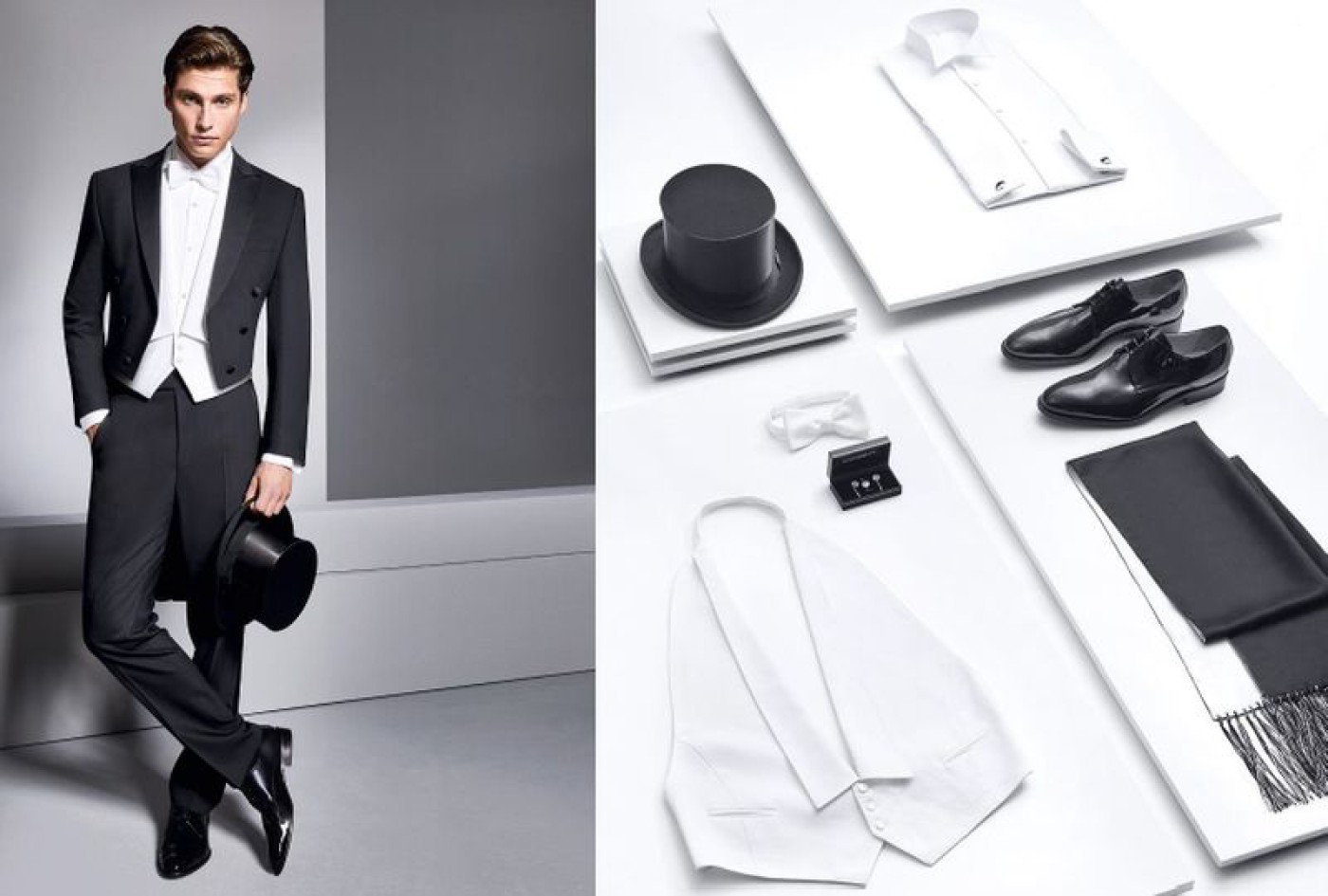 White tie is de meest formele dresscode, en deze kan gedragen worden op feesten, gala's en bij ceremoniële gebeurtenissen. De term White Tie of Cravate Blanche slaat op de witte vlinderdas die traditioneel bij een rokkostuum wordt gedragen in combinatie met een wit vest. De rokjas of tailcoat heeft puntige revers en lange panden, wit overhemd met opstaande boord ook wel klapkraag of vadermoordenaar genoemd, een wit vest, een witte vlinderdas en een zwarte broek met galon ( satijnen bies ) aan de zijkant. . Daaronder zijn alleen nette zwarte lakschoenen gepast. Een polshorloge is overigens uit den boze.